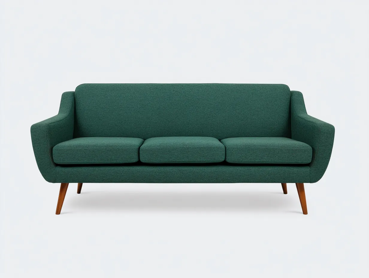 Sofá de 3 plazas de tela verde azulado con patas de madera 211 x 86 x 84 cm - para salón - estilo mid-century actual