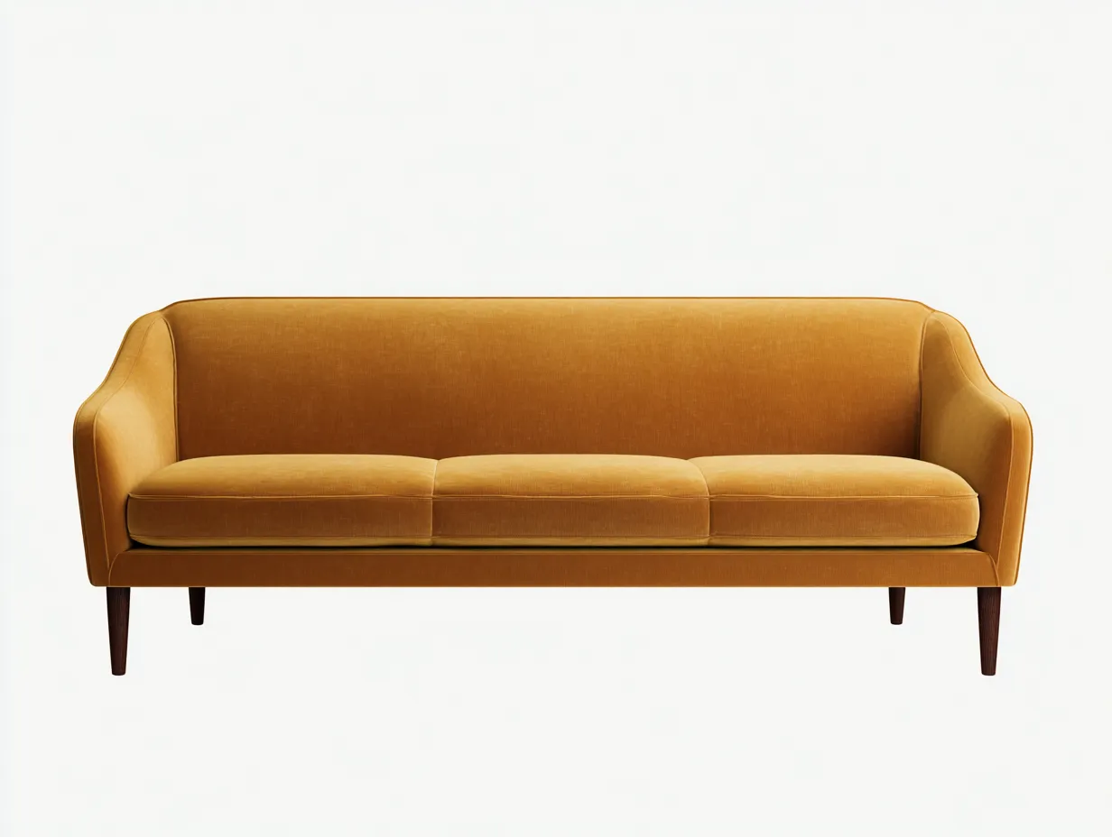 Sofá de 3 plazas de terciopelo ámbar con patas de madera oscura 212 x 86 x 84 cm - para salón - estilo elegante y contemporáneo