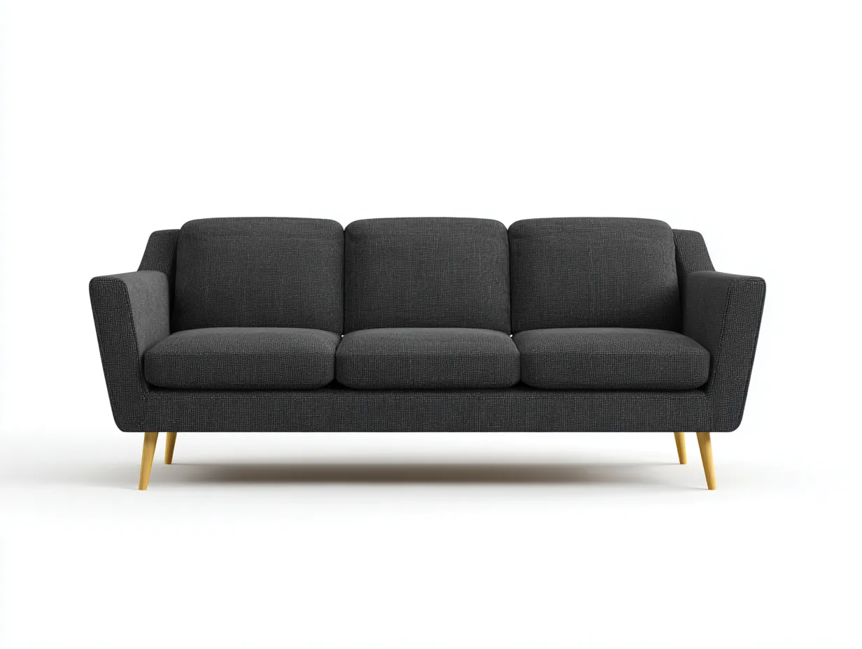 Sofá de 3 plazas de tela gris oscuro con patas de madera clara 212 x 85 x 83 cm - para salón - estilo moderno y funcional