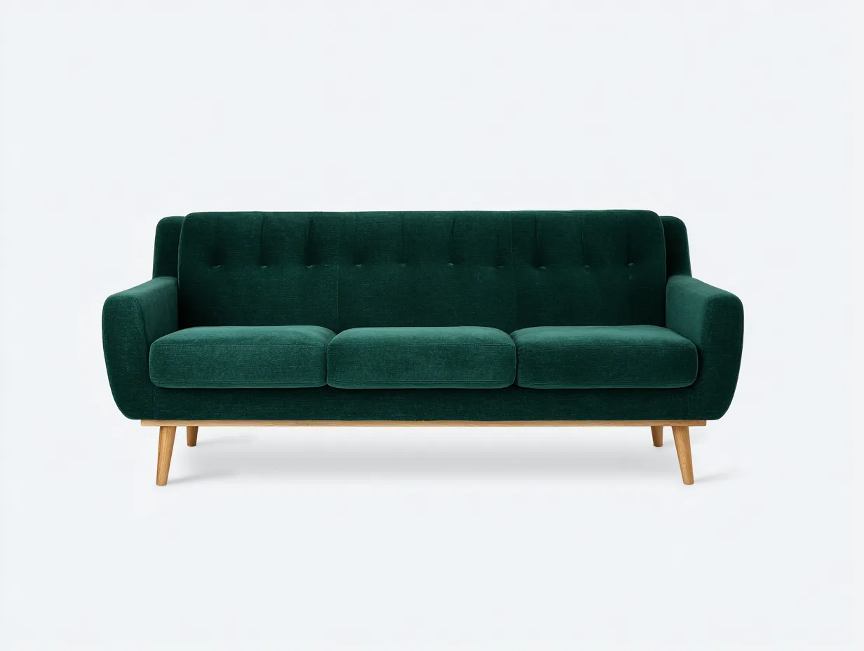 Sofá de 3 plazas de tela verde oscuro con respaldo capitoné y base de madera clara 213 x 87 x 84 cm - para salón - estilo nórdico con inspiración retro