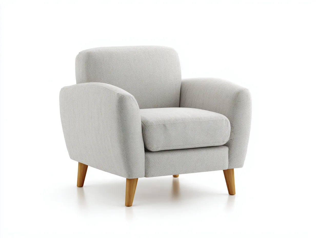 Tapizado en tela de textura agradable, el sillón ofrece un contacto suave y adecuado para el uso diario. La estructura interna proporciona estabilidad y soporte. Las patas de madera natural refuerzan la resistencia y añaden un toque cálido al conjunto. El acabado general combina sencillez y practicidad.